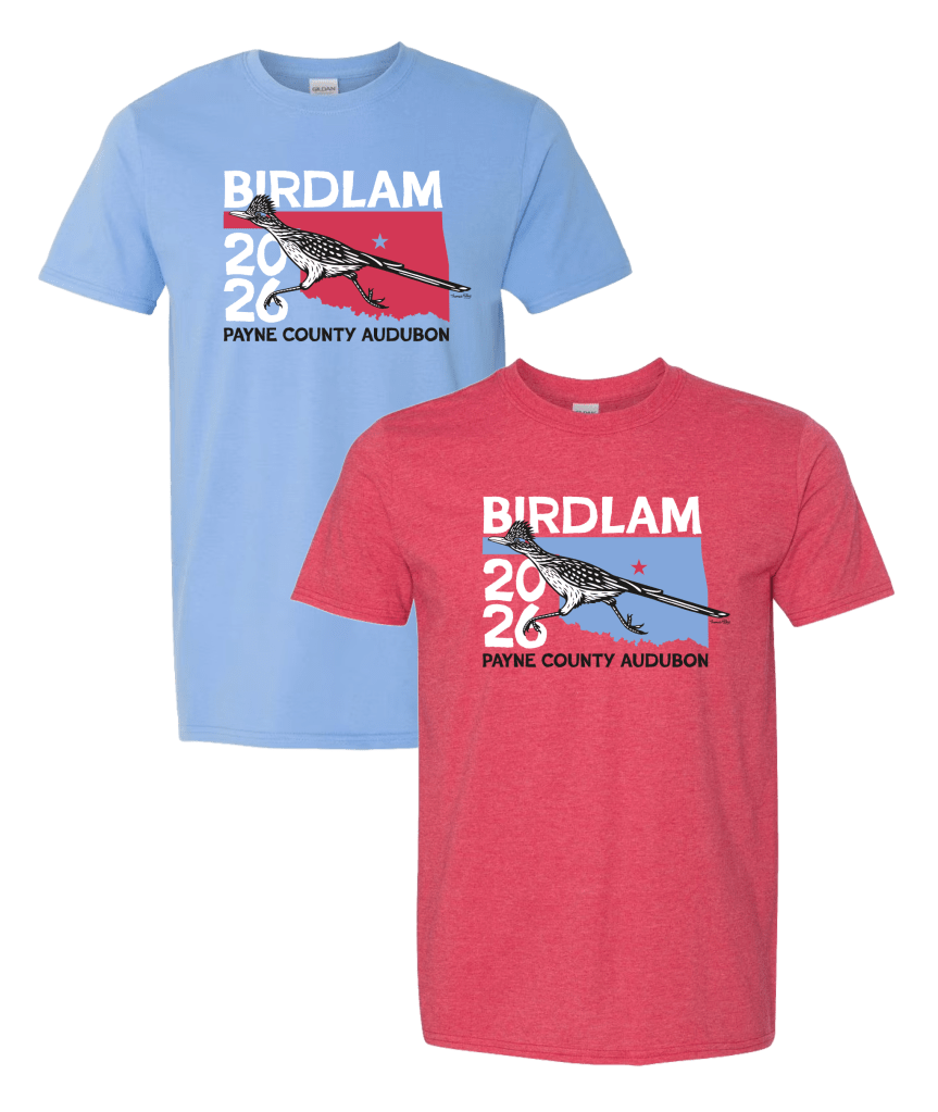 Birdlam began as a nod to the “Bedlam” rivalry between Oklahoma State University and the University of Oklahoma. True to this spirit, the first Birdlam in 2021 was a friendly competition between the Payne County Audubon Society (OSU) and the Cleveland County Audubon Society (OU) for the largest tally within their respective counties. Beginning in 2022, the competition was opened to everyone in the state. Participants can bird anywhere in Oklahoma, and can compete to win individual and group awards. Birdlam is our version of a “Big Day” competition, where the focus is on finding the most species, rather than counting individuals (except for our target bird, the Greater Roadrunner!). We mostly follow the rules of the ABA for a big day, but with a few twists to make our event unique that you can see below.