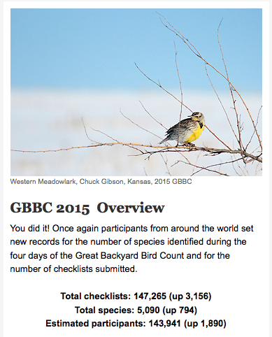 The results are in, and the 2015 Great Backyard Bird Count again set new records for number of species observed and number of checklists submitted!